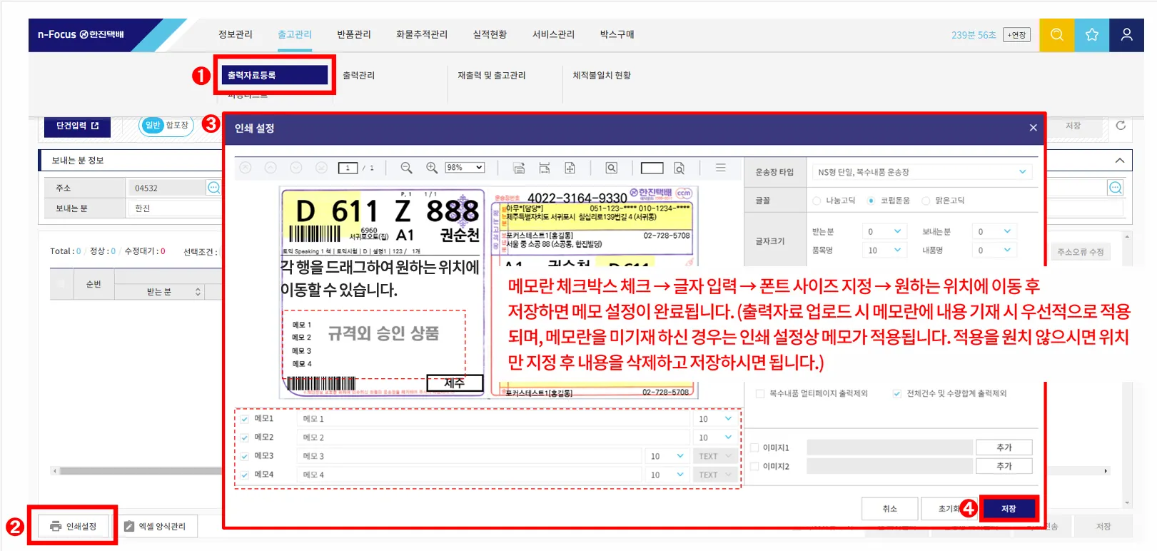 ※ 운송장은 인쇄설정 상 저장된 운송장 양식으로 출력됩니다.